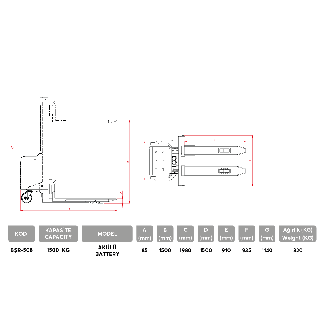 BŞR-508 1.5 TON Akülü İstif Makinesi
