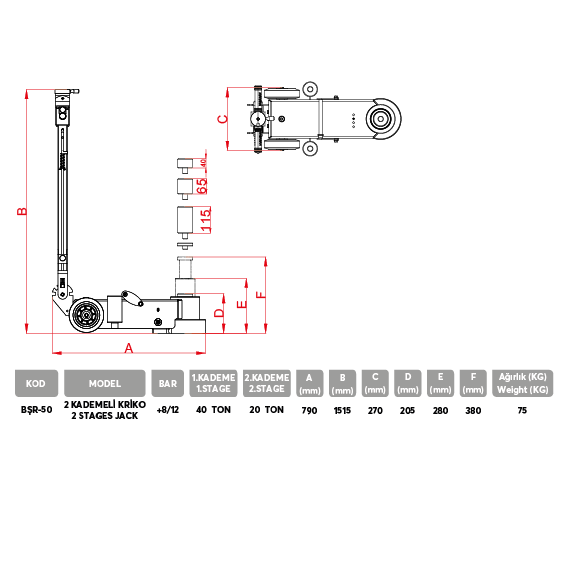 BŞR-51 70-40-20 Ton Hidropnömatik Kriko