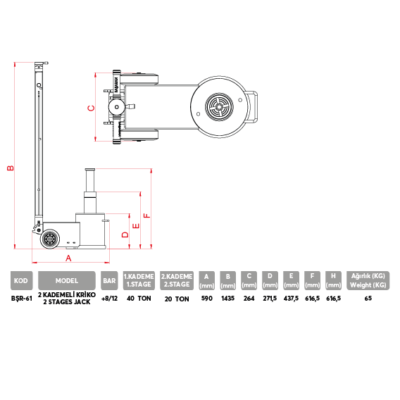 BŞR-61 40-20 Ton Hidropnömatik Kriko