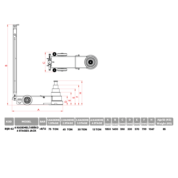 BŞR-62 75-45-30-13 Ton Hidropnömatik Kriko
